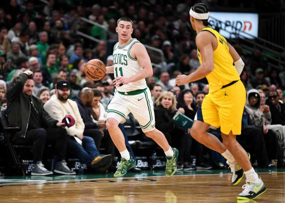 凯尔特人上一场客场103-104惜败活塞,步行者过去两场连续客场输给活塞与76人遭遇2连败,本赛季前三次交锋凯尔特人2胜1负处于上风。本场凯尔特人缺少塔图姆与米诺特,步行者缺少托平、哈利伯顿与马瑟林。首节开局凯尔特人6-0领先,步行者连追5分,双方之后持续紧咬比分缠斗,逐步鏖战至18-18。凯尔特人内外开花一波12-2攻势追分,首节结束凯尔特人30-20领先步行者。首节双方均是23中9,凯尔特人三分命中数4-2领先,双方均没有球员得分上双。